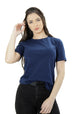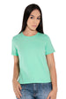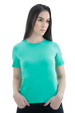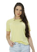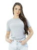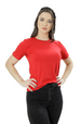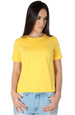 Camiseta baby long feminina, levemente ajustada e alongada.