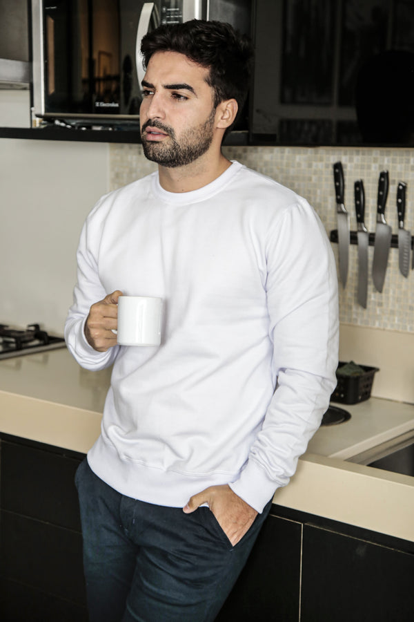 Blusão de moletom felpudo com ribana na gola e punhos.